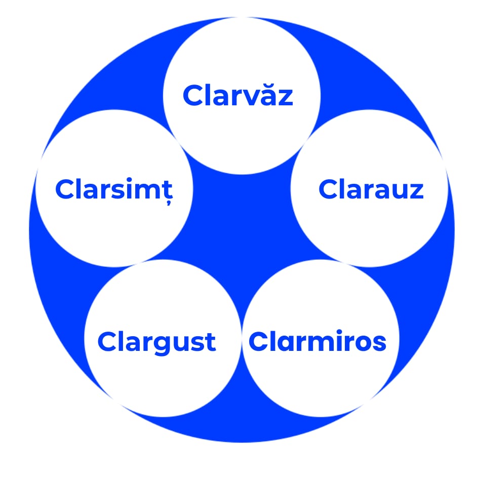 Omul prezintă cele 5 simțuri cunoscute- văz, auz, miros și gust. În parapsihologie, adăugăm prefixul clar- în față, datorită caracteristicii de adevăr, claritudine prin aceste simțuri superioare.